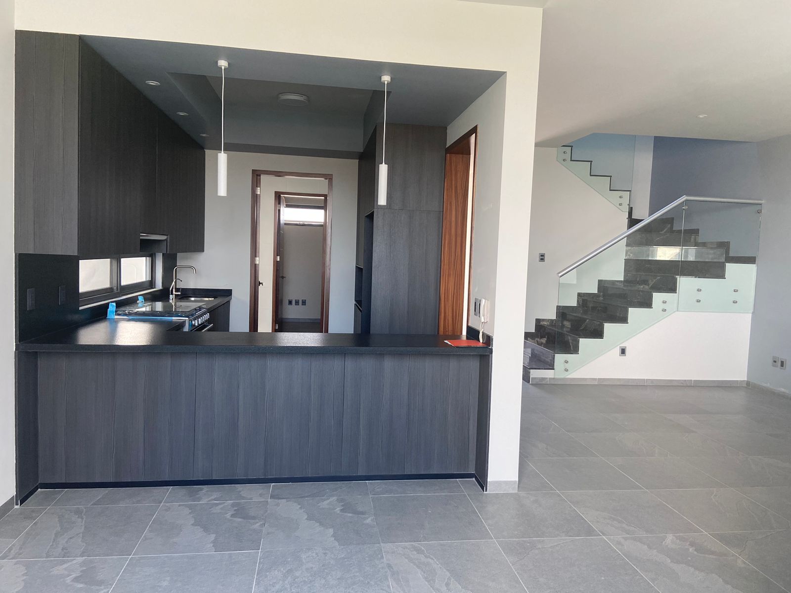 Cocina con barra.
