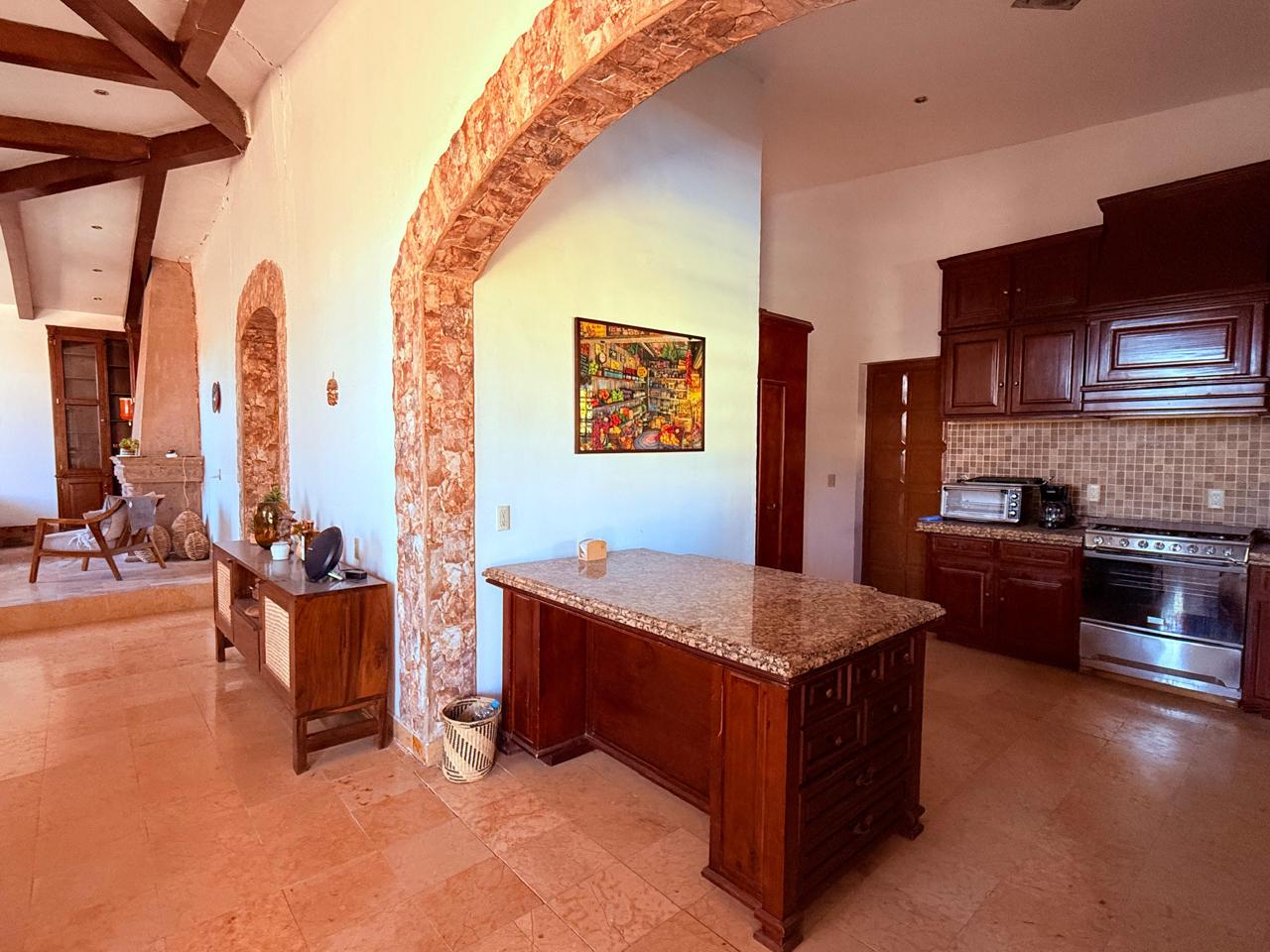 Cocina integral, con barra desayunadora.